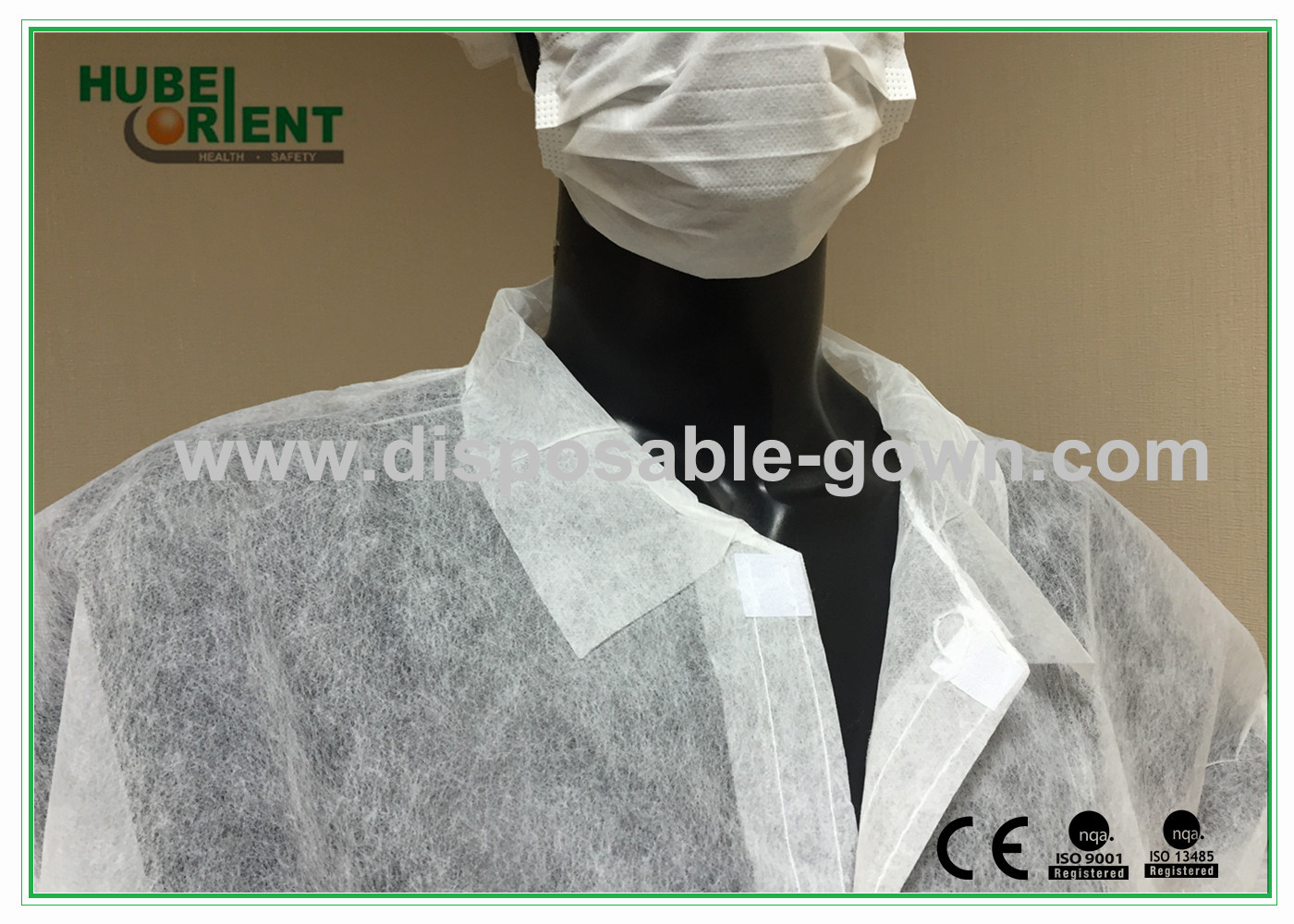 CE onaylı tek kullanımlık laboratuvar paltoları ve Velcros kapanışı Tyvek/MP/SMS/Beden korumak için dokunmamış